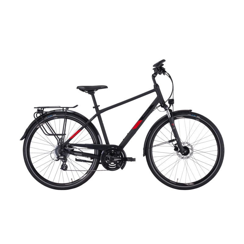 Un vĂ©lo conduit son cycliste Ă des endroits toujours nouveaux. Mais mĂŞme s’ils suivent souvent les mĂŞmes chemins, avec le SOLERO SL 24, vous trouverez un compagnon sur lequel vous pouvez compter. Le City-Tourer avec son cadre trapèze dans un design noir mat n’a pas seulement un aspect Ă©lĂ©gant, grâce Ă l’Ă©quipement de haute qualitĂ©, le confort et la sĂ©curitĂ© sont toujours Ă bord. Du système d’Ă©clairage avec dynamo de moyeu au système iRack avec support de sacoche, le SOLERO offre un ensemble complet habilement coordonnĂ©. Des pneus Ă l’Ă©preuve des crevaisons, la transmission 24 vitesses de Shimano et les puissants freins Ă disques en font tout autant partie que la fourche Ă suspension.